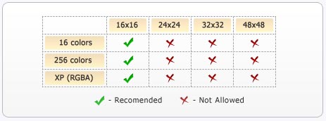 Make sure your icon contains these formats only; if you include a format of a different size to your icon - for example, 32x32 or 48x48 - a browser may simply ignore it and not bother displaying it. The next topic describes how to prepare an icon and make it compatible with the list of formats provided on the list above.