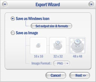3) In the export dialog, click Next. In the save file dialog that appears, select path to folder where the icon will be saved and enter the icon file name 'favicon.ico'.