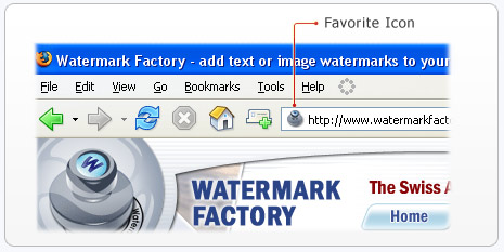 Some Web browsers, like Internet Explorer 5+, Mozilla Firefox, Opera and some others, allow adding a visual icon to website titles. This icon is also known as Shortcut Icon or Favorites Icon. When the icon is bound to a website, it appears in the left end of the address line and in your browser's Favorites menu if the address is added to Favorites.