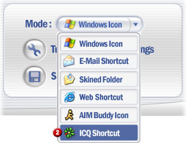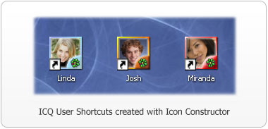 Do you have certain ICQ contacts you are always chatting with? If so, try making a ICQ shortcut on your desktop or Quick Launch toolbar. Next time you need to start chatting, just double-click the shortcut and your ICQ will open this contacts message window. Here is an example of shortcuts created with Icon Constructor:
