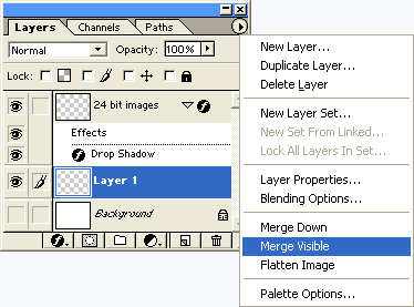 - To merge the drop shadow and the 24-bit images, create a new blank layer.