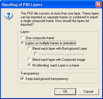 - The background layer of each 24-bit image will appear as a frame. Remove these blank frames by selecting the frame and pressing the Delete key.