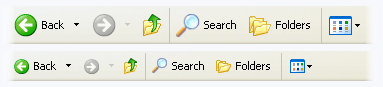 The Windows toolbar icons follow the same style as other icons except they do not use a drop shadow. Because toolbar icons are fairly small, we recommend keeping the images simple. It is acceptable to have the images be straight-on rather than using the angle if it helps the readability of the image.